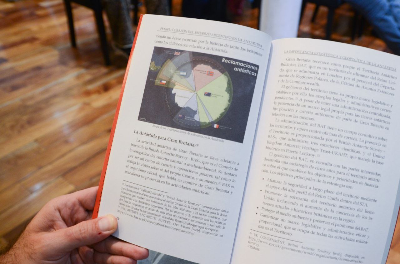 El encuentro contó con la presentación del libro “Petrel: corazón del esfuerzo argentino en la Antártida”, junto a su autor David Pizarro Romero, investigador y especialista en Derecho y Gestión Antártica; el General (R) Edgar F. Calandín, ex Comandante del Comando Conjunto Antártico; y María Laura Civale, abogada y docente universitaria, especialista en Antártida, Malvinas y Atlántico Sur, referente del OCIPEx en temas de soberanía, derecho internacional y geopolítica antártica.