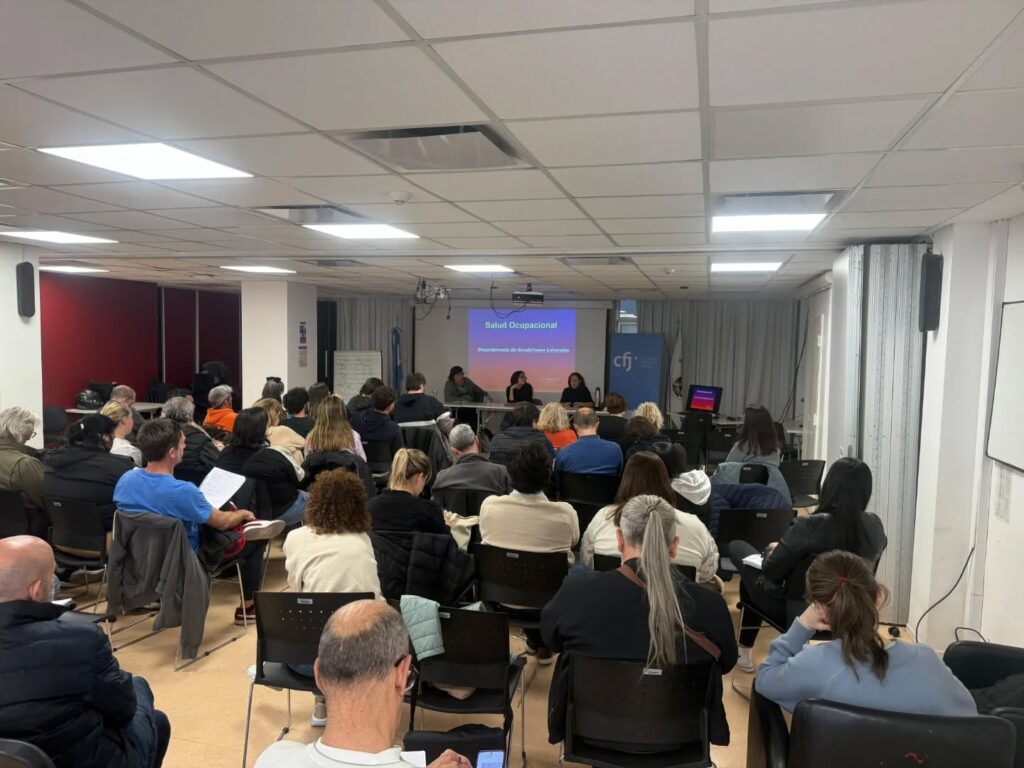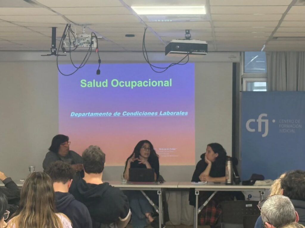 En ese marco, charlamos con trabajadores y trabajadoras del Poder Judicial de la CABA sobre derecho laboral, el convenio 190 de la OIT y la ley 1225 sobre violencia y acoso laboral, riesgos psicosociales y ergonomía.
